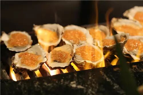 但是生蚝最常见的吃法就是炭烧生蚝,不管你走在哪里的小吃街,在海产小摊前面,都会发现炭烧生蚝的身影,其做法简单,只需要将整个生蚝丢进炭火中,经过一阵猛烤,待生蚝的汁水香味飘出后,用大个的铁钳将其夹出,一刀搞定。烤蚝师傅熟练地用刀具将烤好的生蚝外壳劈开,即能上盘食用。